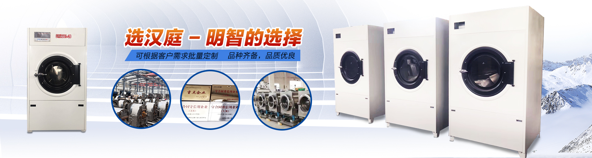 江蘇漢庭機械制造有限公司位于長江三角洲地區,是專業生產制造服裝洗滌機械,賓館、酒店等洗衣房設備的廠家。公司主要產品有工業洗衣機、洗脫兩用機、洗脫烘一體機、服裝石磨水洗機、襪子染色機、絲綢砂洗機、脫水機、脫油機、脫油烘干機、烘干機、燙、熨平機、蒸氣燙臺、地毯清洗機等 洗滌機械產品。 產品廣泛應用于紡織、水洗廠、漂染廠、砂洗廠、印染、絲綢、服裝以及化工乳膠業、賓館、飯店、醫院、招待所等行業。